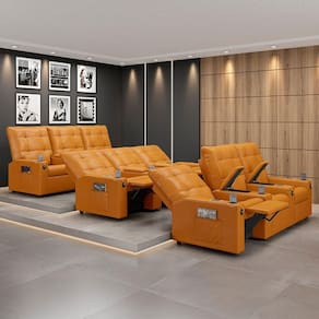 Que tal criar seu próprio home cinema? Aqui, vamos mostrar como você pode montar o seu! Com o local adequado, alguns itens decorativos e uma poltrona ideal, você garantirá um espaço confortável e imersivo. O primeiro passo é investir em equipamentos de alta qualidade! Olha só que lindeza a nossa Poltrona Reclinável Para Cinema Parma 3 Lugares. Ela foi projetada para proporcionar máximo conforto e funcionalidade, esta poltrona é a escolha ideal para quem busca relaxamento, estilo e uma experiência de cinema privada. Seu mecanismo reclinável permite ajustar a poltrona conforme suas necessidades, independente, com 2 estágios e 3 posições ajustáveis, seja para assistir a um filme, ler um livro ou simplesmente descansar. Com capacidade para suportar até 110 kg cada, oferecendo segurança e estabilidade ao consumidor. O revestimento em Sintético PU Whisky oferece um toque de sofisticação e conforto, enquanto a estrutura em madeira de eucalipto garante resistência e durabilidade. O sistema de abertura fácil permite ajustar a poltrona sem esforço: basta colocar as mãos nos braços, inclinar o corpo para trás e empurrar as mãos para frente. O encosto e o assento são sustentados por percintas elásticas. Eles são preenchidos com fibra siliconada e espuma D-26 Soft, respectivamente, para um conforto adicional. Os braços da Poltrona Reclinável contêm enchimento em espuma D-20, proporcionando um apoio suave e confortável. O assento (fixo) e o apoio de Pés Retrátil proporcionam um apoio perfeito para suas pernas, aumentando o conforto. O encosto reclinável, possibilita ajustá- lo para a posição ideal de relaxamento. Já os pés (fixos) foram feitos em madeira, adicionando um toque de elegância ao produto. E tem mais!! Ela contém lém disso, a poltrona ainda conta com porta copos, entrada USB e tipo C,baú porta objetos e um revisteiro lateral prático nas braças com um bolso prático para armazenar revistas e livros, mantendo tudo ao seu alcance. Com um design moderno e prático, esta poltrona se tornará o destaque da sua sala de estar. Afinal, sua casa merece a Poltrona Reclinável Para Cinema Parma 3 Lugares. Adquira a sua agora mesmo e transforme sua sala de estar em um verdadeiro cinema!
