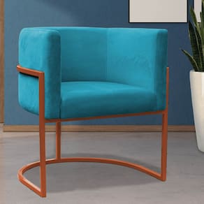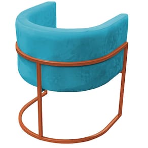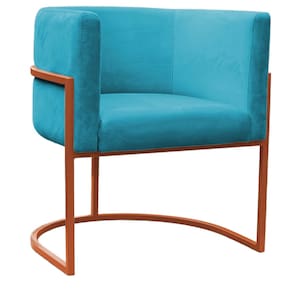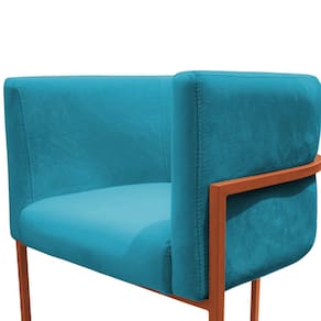 Poltrona Reforçada Decorativa Sala Carla Base Ferro Bronze Suede Azul Tifany