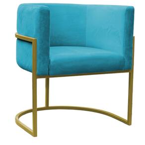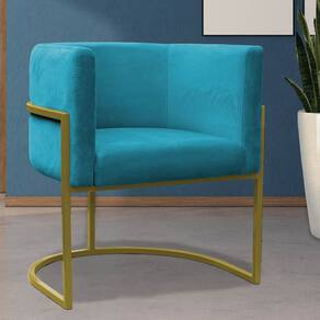 Poltrona Reforçada Decorativa Sala Carla Base Ferro Dourada Suede Azul Tifany