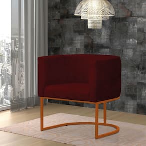 Poltrona Reforçada Decorativa Sala Gabriela Base Ferro Bronze Suede Marsala