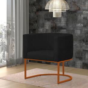 Poltrona Reforçada Decorativa Sala Gabriela Base Ferro Bronze Suede - Preto