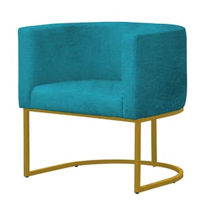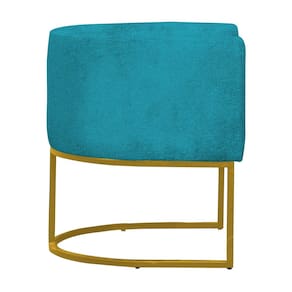 Poltrona Reforçada Decorativa Sala Gabriela Base Ferro Dourada Suede Azul Tifany
