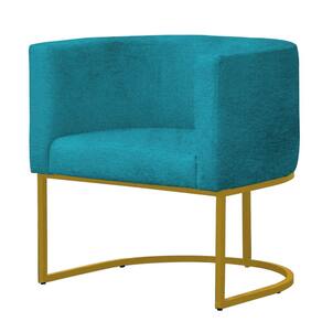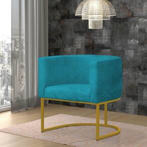 Poltrona Reforçada Decorativa Sala Gabriela Base Ferro Dourada Suede - Azul