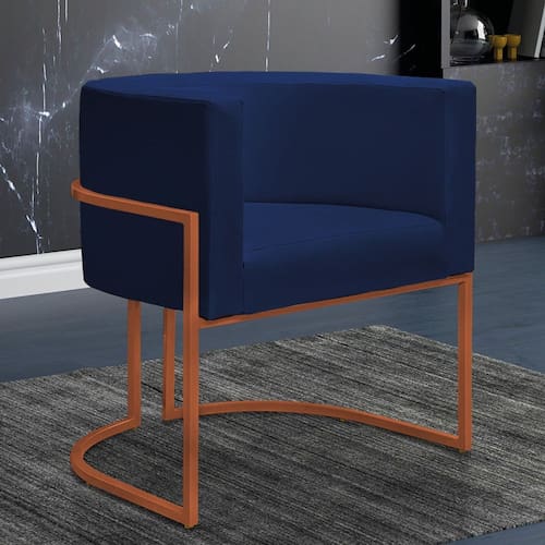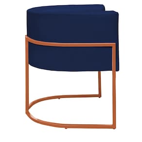Poltrona Reforçada Decorativa Sala Nayara Base Ferro Bronze Suede Azul Marinho
