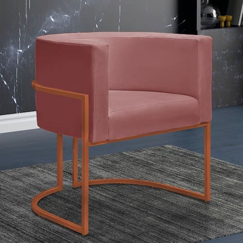 Poltrona Reforçada Decorativa Sala Nayara Base Ferro Bronze Suede - Rosê