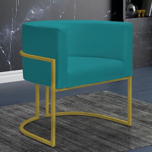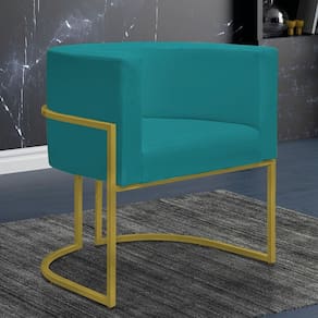 Poltrona Reforçada Decorativa Sala Nayara Base Ferro Dourado Suede - Azul