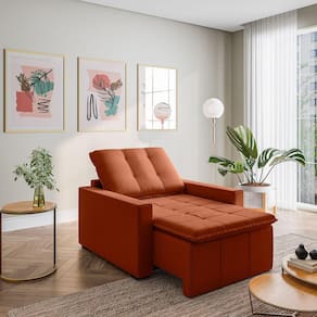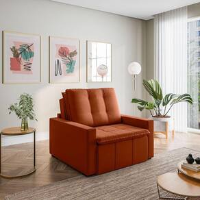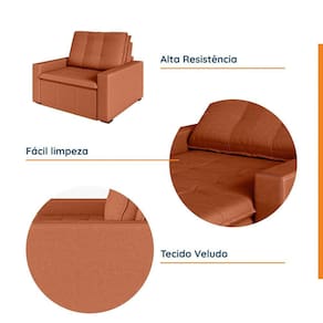 A Poltrona Palmeira CabeCasa MadeiraMadeira é a solução perfeita para quem tem pouco espaço disponível. Com ele você poderá se acomodar com conforto e praticidade. Produzido em madeira maciça de eucalipto, suporta até 200kg. Depois nos conte como foi a experiência de compra e como ficou seu ambiente nos comentários! Acompanha Almofadas extras: Não Acompanha Puff: Não Almofada do assento: Fixa Almofada do encosto: Removível Altura do assento até o chão: 48 cm Altura do Encosto: 60 cm Altura dos Pés: 3 cm Ambiente Principal: Sala de Estar Complexidade da Montagem: Baixa: pode ser montado por uma pessoa sozinha Cor: Terracota Cor do Produto: Terracota Design Assinado: Não Enchimento do Assento: Espuma D-25 Enchimento do Braço: Espuma D-18 Enchimento do Encosto: Fibra Siliconada Encosto para a Cabeça: Não Estampado: Não Extensível: Sim Firmeza do Assento: Não Possui Itens Inclusos: 1 Poltrona, 4 pés e manual de montagem Linha ou Coleção: Palmeira Manual de Montagem e Instalação: https://product-hub-prd.madeiramadeira.com.br/895106/documents/484abc8a-349a-4093-b4ca-c1da0993afb2lpoltronapalmeirasempillow.pdf Material do Braço: Madeira de Eucalipto Material dos Pés: Plástico Modelo de Poltrona: Retrátil Necessita Montagem: Sim Peso: 38,64 kg Possui Percintas Elásticas: Sim Possui Pés: 04 Possui Rodízio: Sim Profundidade quando extendido: 144 cm Recomendações de Uso, Manutenção e Limpeza: Evitar exposição direta à luz solar, limpar com escova macia e aspirar o pó semanalmente, não utilizar produtos químicos, removedores, alvejantes, etc. Evite exercer pressão excessiva sobre determinada partes do estofado, não utilizar para limpeza equipamentos a vapor de água. Rodízio com Trava: Não Sistema de Montagem: Pés encaixados. Suporta Até (kg): 200 kg Tecido Predominante: Veludo Tipo de Assento: Fixo Tipo de Encosto: Fixo Tipo de Espuma do Assento: Espuma Convencional Tipo de Poltrona: Leitura