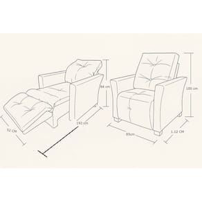 Medidas Profundidade total fechada 1.12 Profundidade aberta 192 cm Largura 85cm Altura de pê 100 cm Altura deitado 84 cm