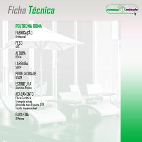 A poltrona e produzida em Aluminio e tem acabamento em Fibra Sintetica de alta qualidade. A almofada que acompanha a poltrona tem um assento Impermeavel, revestido com espuma de alta densidade (D28), o que proporciona um conforto excepcional.