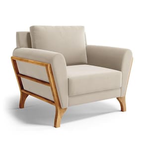 Poltrona Sabrina De Madeira Maciça Com Almofada Veludo Bege 102 - Poltrona Para Sala De Estar E Amamentação