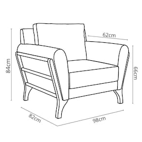 • Dimensões do produto: Altura: 84cm; Largura: 98cm; Profundidade: 82cm; Altura do chão ao assento: 66cm; Profundidade do assento: 62cm