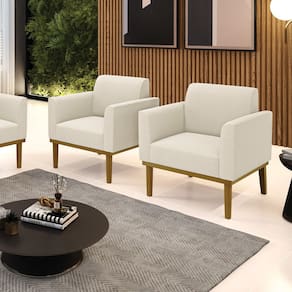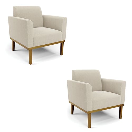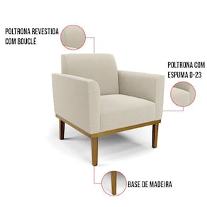 Poltrona Sala Base Madeira Castanho Kit 2 Marisa Bouclê D03 - D`Rossi - Bege