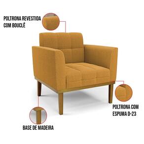 A Poltrona Elisa é uma poltrona que combina elegância, conforto e durabilidade. Ela tem um design retrô e sofisticado, com Base de Madeira Fixa Castanho e revestimento em tecido Bouclê Mostarda, que harmonizam com qualquer ambiente. Ela é ideal para sala de estar, recepções, escritórios, cozinhas ou qualquer outro espaço que você queira decorar com estilo e bom gosto. Ela tem uma estrutura em madeira de reflorestamento eucalipto, que garante a resistência e a sustentabilidade do produto. Ela suporta até 120 kg de peso, podendo ser utilizada por pessoas de diferentes biotipos. Ela tem um acabamento reforçado e espuma de qualidade D23, que oferece maciez e aconchego. Ela contém detalhes de costura no encosto e assento, resultando em um acabamento impecável, conferindo muito mais valor e elegância ao produto. A Poltrona Elisa é um móvel de alta qualidade, beleza e funcionalidade. Ela é fácil de transportar, pois tem um peso leve e um tamanho compacto. A Poltrona Elisa é um produto que vai fazer a diferença na sua decoração e no seu bem-estar. Ela vai trazer charme, conforto e durabilidade para o seu ambiente. Aproveite essa oferta e leve para casa uma poltrona de qualidade por um preço incrível. Essa é a sua chance de ter uma poltrona maravilhosa por um preço imperdível. Corra e garanta a sua antes que acabe o estoque!