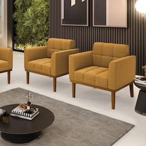 A Poltrona Elisa é uma poltrona que combina elegância, conforto e durabilidade. Ela tem um design retrô e sofisticado, com Base de Madeira Fixa Castanho e revestimento em tecido Bouclê. Ela é ideal para sala de estar, recepções, escritórios, cozinhas ou qualquer outro espaço que você queira decorar com estilo e bom gosto. Ela tem uma estrutura em madeira de reflorestamento eucalipto, que garante a resistência e a sustentabilidade do produto. Ela suporta até 120 kg de peso, podendo ser utilizada por pessoas de diferentes biotipos. Ela tem um acabamento reforçado e espuma de qualidade D23, que oferece maciez e aconchego. Ela contém detalhes de costura no encosto e assento, resultando em um acabamento impecável, conferindo muito mais valor e elegância ao produto. A Poltrona Elisa é um móvel de alta qualidade, beleza e funcionalidade. Ela é fácil de transportar, pois tem um peso leve e um tamanho compacto. A Poltrona Elisa é um produto que vai fazer a diferença na sua decoração e no seu bem-estar. Ela vai trazer charme, conforto e durabilidade para o seu ambiente. Aproveite essa oferta e leve para casa uma poltrona de qualidade por um preço incrível. Essa é a sua chance de ter uma poltrona maravilhosa por um preço imperdível. Corra e garanta seu Kit 2 Poltronas antes que acabe o estoque!