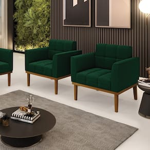 A Poltrona Elisa é uma poltrona que combina elegância, conforto e durabilidade. Ela tem um design retrô e sofisticado, com Base de Madeira Fixa Castanho e revestimento em tecido Bouclê Verde, que harmonizam com qualquer ambiente. Ela é ideal para sala de estar, recepções, escritórios, cozinhas ou qualquer outro espaço que você queira decorar com estilo e bom gosto. Ela tem uma estrutura em madeira de reflorestamento eucalipto, que garante a resistência e a sustentabilidade do produto. Ela suporta até 120 kg de peso, podendo ser utilizada por pessoas de diferentes biotipos. Ela tem um acabamento reforçado e espuma de qualidade D23, que oferece maciez e aconchego. Ela contém detalhes de costura no encosto e assento, resultando em um acabamento impecável, conferindo muito mais valor e elegância ao produto. A Poltrona Elisa é um móvel de alta qualidade, beleza e funcionalidade. Ela é fácil de transportar, pois tem um peso leve e um tamanho compacto. A Poltrona Elisa é um produto que vai fazer a diferença na sua decoração e no seu bem-estar. Ela vai trazer charme, conforto e durabilidade para o seu ambiente. Aproveite essa oferta e leve para casa uma poltrona de qualidade por um preço incrível. Essa é a sua chance de ter uma poltrona maravilhosa por um preço imperdível. Corra e garanta seu Kit 2 Poltronas antes que acabe o estoque!