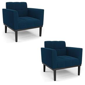 Poltrona Sala Base Madeira Fixa Pto Kit 2 Elisa Bouclê D03 - D`rossi Cor Azul