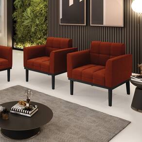 Poltrona Sala Base Madeira Fixa Pto Kit 2 Elisa Bouclê D03 - D`Rossi - Marrom