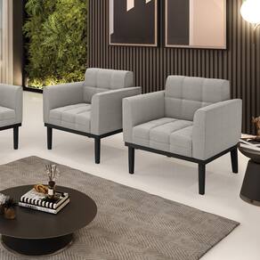 Poltrona Sala Base Madeira Fixa Pto Kit 2 Elisa Bouclê D03 - D`Rossi - Cinza