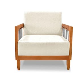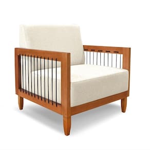 Poltrona Sala De Estar Base De Madeira Mariana Linho Natural S04 - D`rossi - Blush