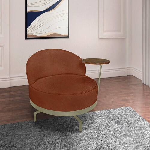 Poltrona Sala De Estar Base Giratória Dourada Aura Bouclê S04 - D`rossi Cor Marrom - Blush