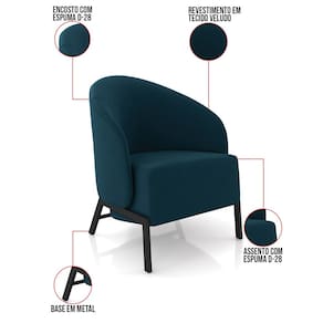 Poltrona Sala de Estar Base Industrial Kit 2 Luar Veludo K01 - D`Rossi - Azul