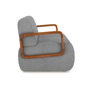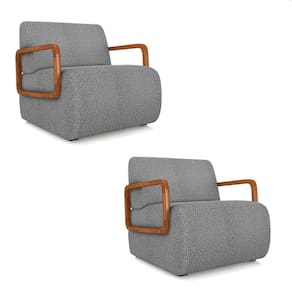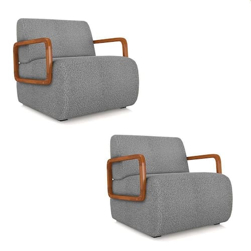 Poltrona Sala De Estar Braço De Madeira Kit 2 Hellen Bouclê K01 - D`rossi Cor Cinza