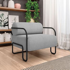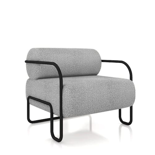 Poltrona Sala de Estar Industrial Preto Ameli Bouclê K01 - D`Rossi - Cinza Claro