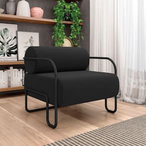 A Poltrona Ameli é uma poltrona que combina elegância, conforto e durabilidade. Ela tem um design moderno e sofisticado, com base em ferro com detalhe em sintético nas costas e revestimento em tecido Veludo Preto, que harmonizam com qualquer ambiente. Ela é ideal para sala de estar, recepções, mesa de jantar ou qualquer outro espaço que você queira decorar com estilo e bom gosto. Ela tem uma estrutura em madeira de reflorestamento eucalipto devidamente aparelhada com reforços de cantoneiras e chapas em MDF, que garante a resistência e a sustentabilidade do produto. Ela suporta até 120 kg de peso, podendo ser utilizada por pessoas de diferentes biotipos. Ela tem um acabamento reforçado, no assento (fixo) com espumas D-26 e persintas elásticas, no encosto (fixo) possui fibra siliconada que proporcionam flexibilidade e conforto. A Poltrona Ameli é um produto de alta qualidade, beleza e funcionalidade. Ela é fácil de transportar, pois tem um peso leve e um tamanho compacto. A Poltrona Ameli é um produto que vai fazer a diferença na sua decoração e no seu bem-estar. Ela vai trazer charme, conforto e durabilidade para o seu ambiente. Aproveite essa oferta e leve para casa uma poltrona de qualidade por um preço incrível. Essa é a sua chance de ter uma poltrona maravilhosa por um preço imperdível. Corra e garanta a sua antes que acabe o estoque!