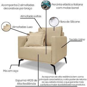 A Poltrona Liv foi desenvolvida para quem procura uma peça que une conforto e estilo. Com 80cm de largura e revestimento em linho de alta qualidade, proporciona um toque sofisticado e aconchegante, ideal para qualquer ambiente. Os pés em aço carbono garantem resistência e um design moderno, enquanto o encosto conta com almofadas soltas em fibra de silicone, oferecendo um suporte macio. O assento fixo possui percintas elásticas italianas e molas bonel, combinado com espuma HR28 e plumante em silicone, que garantem qualidade e conforto. Acompanha também duas almofadas decorativas, que adicionam um charme extra e permitem personalizar ainda mais a sua poltrona. Perfeita para diversos ambientes, a Poltrona Liv é a escolha ideal para quem busca aliar conforto e beleza no dia a dia. Este móvel chegará em sua casa separado em 01 volume.