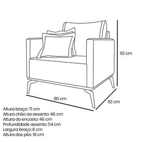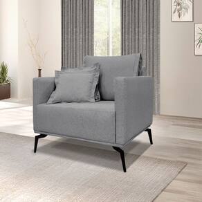 Poltrona Sala de Estar Pé de Ferro Preto Rafaela Linho S04 - D`Rossi - Cinza
