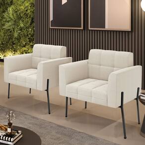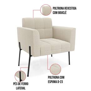 Poltrona Sala de Estar Pé de Ferro Pto Kit 2 Elisa Bouclê D03 - D`Rossi - Bege