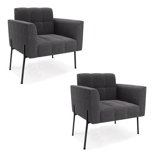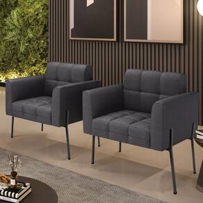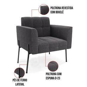 A Poltrona Elisa é uma poltrona que combina elegância, conforto e durabilidade. Ela tem um design retrô e sofisticado, com Pés Laterais de Ferro Preto e revestimento em tecido Bouclê Grafite, que harmonizam com qualquer ambiente. Ela é ideal para sala de estar, recepções, escritórios, cozinhas ou qualquer outro espaço que você queira decorar com estilo e bom gosto. Ela tem uma estrutura em madeira de reflorestamento eucalipto, que garante a resistência e a sustentabilidade do produto. Ela suporta até 120 kg de peso, podendo ser utilizada por pessoas de diferentes biotipos. Ela tem um acabamento reforçado e espuma de qualidade D23, que oferece maciez e aconchego. Ela contém detalhes de costura no encosto e assento, resultando em um acabamento impecável, conferindo muito mais valor e elegância ao produto. A Poltrona Elisa é um móvel de alta qualidade, beleza e funcionalidade. Ela é fácil de transportar, pois tem um peso leve e um tamanho compacto. A Poltrona Elisa é um produto que vai fazer a diferença na sua decoração e no seu bem-estar. Ela vai trazer charme, conforto e durabilidade para o seu ambiente. Aproveite essa oferta e leve para casa uma poltrona de qualidade por um preço incrível. Essa é a sua chance de ter uma poltrona maravilhosa por um preço imperdível. Corra e garanta seu Kit 2 Poltronas antes que acabe o estoque!