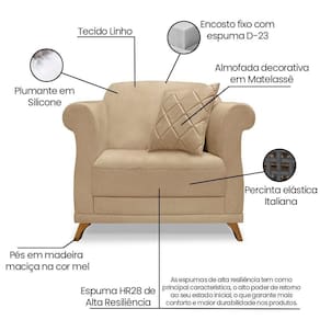 A Poltrona Julieta é uma poltrona que combina elegância, conforto e durabilidade. Ela tem um design moderno e sofisticado, com pés em madeira maciça na cor mel e revestimento em tecido Linho Rústico Dourado, que harmonizam com qualquer ambiente. Ela é ideal para sala de estar, recepções ou qualquer outro espaço que você queira decorar com estilo e bom gosto. Ela tem uma estrutura em madeira de reflorestamento eucalipto, que garante a resistência e a sustentabilidade do produto. Ela suporta até 120 kg de peso, podendo ser utilizada por pessoas de diferentes biotipos. Ela tem um acabamento reforçado com espuma de qualidade no encosto D23 e plumante em silicone, que oferece maciez e aconchego. Acompanha 1 almofada decorativa ( Enchimento fibra de silicone) bordadas em matelassê por braço. Ela tem assento Fixo com percintas elásticas italiana, espuma HR 28 e plumante em silicone, que proporcionam flexibilidade e conforto. Tem pés em madeira maciça com altura de 12 cm, que protegem o produto contra corrosão e desgaste. A Poltrona Julieta é um produto de alta qualidade, beleza e funcionalidade. Ela é fácil de transportar, pois tem um peso leve e um tamanho compacto. A Poltrona Julieta é um produto que vai fazer a diferença na sua decoração e no seu bem-estar. Ela vai trazer charme, conforto e durabilidade para o seu ambiente. Aproveite essa oferta e leve para casa uma poltrona de qualidade por um preço incrível. Essa é a sua chance de ter uma poltrona maravilhosa por um preço imperdível. Corra e garanta a sua antes que acabe o estoque!