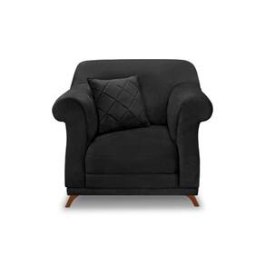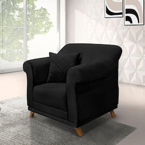 Poltrona Sala De Estar Pé De Madeira Julieta Veludo S04 - D'rossi Cor Preto