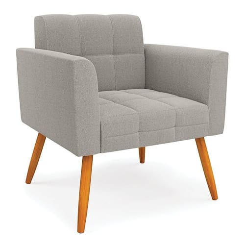A Poltrona Elisa é uma poltrona que combina elegância, conforto e durabilidade. Ela tem um design retrô e sofisticado, com Pés Palito Castanho e revestimento em tecido Bouclê Cinza, que harmonizam com qualquer ambiente. Ela é ideal para sala de estar, recepções, escritórios, cozinhas ou qualquer outro espaço que você queira decorar com estilo e bom gosto. Ela tem uma estrutura em madeira de reflorestamento eucalipto, que garante a resistência e a sustentabilidade do produto. Ela suporta até 120 kg de peso, podendo ser utilizada por pessoas de diferentes biotipos. Ela tem um acabamento reforçado e espuma de qualidade D23, que oferece maciez e aconchego. Ela contém detalhes de costura no encosto e assento, resultando em um acabamento impecável, conferindo muito mais valor e elegância ao produto. A Poltrona Elisa é um móvel de alta qualidade, beleza e funcionalidade. Ela é fácil de transportar, pois tem um peso leve e um tamanho compacto. A Poltrona Elisa é um produto que vai fazer a diferença na sua decoração e no seu bem-estar. Ela vai trazer charme, conforto e durabilidade para o seu ambiente. Aproveite essa oferta e leve para casa uma poltrona de qualidade por um preço incrível. Essa é a sua chance de ter uma poltrona maravilhosa por um preço imperdível. Corra e garanta a sua antes que acabe o estoque!