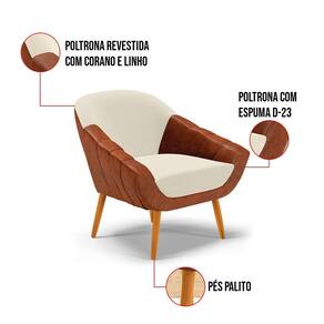 A Poltrona Giovana é uma peça com personalidade marcante que irá atrair todos os olhares! Indispensável para os momentos de leitura e descanso, ela se adapta perfeitamente a diversos ambientes. Pode ser usada para realçar qualquer cantinho da sua sala de estar como complemento decorativo, no quarto como apoio na hora de se vestir, no hall de entrada ganhando destaque principal para receber seus convidados, no escritório como assento extra e vários outros cômodos. Ela possui um peso leve, um tamanho compacto e uma estrutura em madeira de reflorestamento eucalipto, que garante a resistência e a durabilidade do produto. Ela suporta até 120 kg de peso, podendo ser usada por pessoas de diferentes tipos físicos. Ela tem um acabamento reforçado com espuma de qualidade D23, revestida em tecido Corano Nozes com Linho no tom Bege A19 que oferece maciez e aconchego ao sentar-se. Tem pés palito castanho, que adiciona segurança ao usuário e durabilidade à peça. Nas braças possui frisos tanto na parte interna quanto externa, que além de valorizar ainda mais os detalhes da poltrona proporcionam uma aparência extremamente sofisticada. Que tal adicionar conforto visual ao seu espaço! Invista no bem estar da sua família com o Kit 02 Poltronas.
