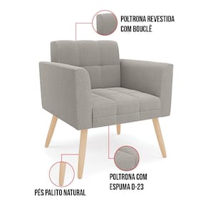A Poltrona Elisa é uma poltrona que combina elegância, conforto e durabilidade. Ela tem um design retrô e sofisticado, com Pés Palito Natural e revestimento em tecido Bouclê Cinza, que harmonizam com qualquer ambiente. Ela é ideal para sala de estar, recepções, escritórios, cozinhas ou qualquer outro espaço que você queira decorar com estilo e bom gosto. Ela tem uma estrutura em madeira de reflorestamento eucalipto, que garante a resistência e a sustentabilidade do produto. Ela suporta até 120 kg de peso, podendo ser utilizada por pessoas de diferentes biotipos. Ela tem um acabamento reforçado e espuma de qualidade D23, que oferece maciez e aconchego. Ela contém detalhes de costura no encosto e assento, resultando em um acabamento impecável, conferindo muito mais valor e elegância ao produto. A Poltrona Elisa é um móvel de alta qualidade, beleza e funcionalidade. Ela é fácil de transportar, pois tem um peso leve e um tamanho compacto. A Poltrona Elisa é um produto que vai fazer a diferença na sua decoração e no seu bem-estar. Ela vai trazer charme, conforto e durabilidade para o seu ambiente. Aproveite essa oferta e leve para casa uma poltrona de qualidade por um preço incrível. Essa é a sua chance de ter uma poltrona maravilhosa por um preço imperdível. Corra e garanta a sua antes que acabe o estoque!