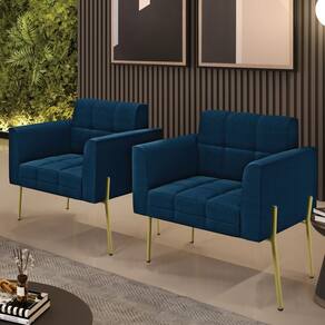 A Poltrona Elisa é uma poltrona que combina elegância, conforto e durabilidade. Ela tem um design retrô e sofisticado, com Pés Laterais de Ferro Dourado e revestimento em tecido Bouclê Azul, que harmonizam com qualquer ambiente. Ela é ideal para sala de estar, recepções, escritórios, cozinhas ou qualquer outro espaço que você queira decorar com estilo e bom gosto. Ela tem uma estrutura em madeira de reflorestamento eucalipto, que garante a resistência e a sustentabilidade do produto. Ela suporta até 120 kg de peso, podendo ser utilizada por pessoas de diferentes biotipos. Ela tem um acabamento reforçado e espuma de qualidade D23, que oferece maciez e aconchego. Ela contém detalhes de costura no encosto e assento, resultando em um acabamento impecável, conferindo muito mais valor e elegância ao produto. A Poltrona Elisa é um móvel de alta qualidade, beleza e funcionalidade. Ela é fácil de transportar, pois tem um peso leve e um tamanho compacto. A Poltrona Elisa é um produto que vai fazer a diferença na sua decoração e no seu bem-estar. Ela vai trazer charme, conforto e durabilidade para o seu ambiente. Aproveite essa oferta e leve para casa uma poltrona de qualidade por um preço incrível. Essa é a sua chance de ter uma poltrona maravilhosa por um preço imperdível. Corra e garanta seu Kit 2 Poltronas antes que acabe o estoque!
