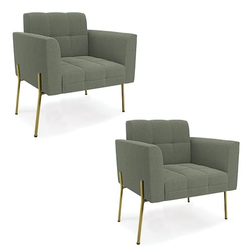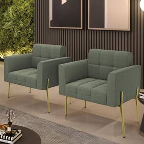 Poltrona Sala Estar Pé Ferro Dourado Kit 2 Elisa Bouclê D03 - D`Rossi - Verde Cinza