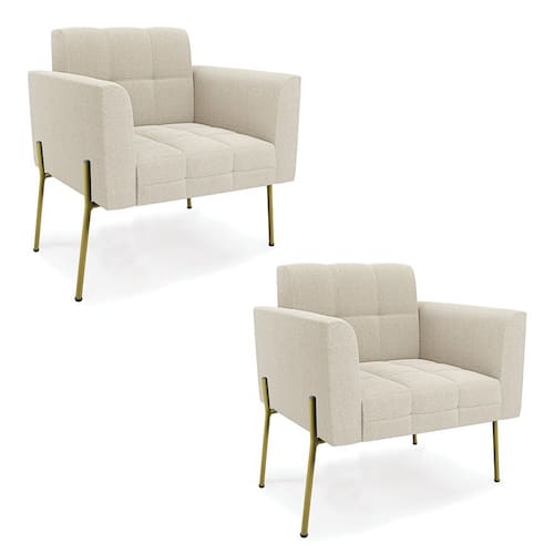 A Poltrona Elisa é uma poltrona que combina elegância, conforto e durabilidade. Ela tem um design retrô e sofisticado, com Pés Laterais de Ferro Dourado e revestimento em tecido Bouclê. Ela é ideal para sala de estar, recepções, escritórios, cozinhas ou qualquer outro espaço que você queira decorar com estilo e bom gosto. Ela tem uma estrutura em madeira de reflorestamento eucalipto, que garante a resistência e a sustentabilidade do produto. Ela suporta até 120 kg de peso, podendo ser utilizada por pessoas de diferentes biotipos. Ela tem um acabamento reforçado e espuma de qualidade D23, que oferece maciez e aconchego. Ela contém detalhes de costura no encosto e assento, resultando em um acabamento impecável, conferindo muito mais valor e elegância ao produto. A Poltrona Elisa é um móvel de alta qualidade, beleza e funcionalidade. Ela é fácil de transportar, pois tem um peso leve e um tamanho compacto. A Poltrona Elisa é um produto que vai fazer a diferença na sua decoração e no seu bem-estar. Ela vai trazer charme, conforto e durabilidade para o seu ambiente. Aproveite essa oferta e leve para casa uma poltrona de qualidade por um preço incrível. Essa é a sua chance de ter uma poltrona maravilhosa por um preço imperdível. Corra e garanta seu Kit 2 Poltronas antes que acabe o estoque!