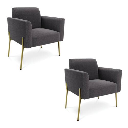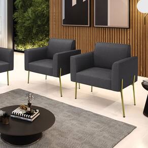 Poltrona Sala Estar Pé Ferro Dourado Kit 2 Marisa Bouclê D03 - D`Rossi - Grafite