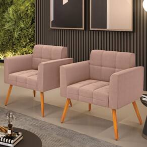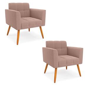 Poltrona Sala Estar Pé Palito Castanho Kit 2 Elisa Bouclê D03 - D`Rossi - Rosê