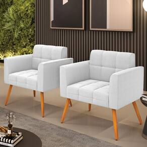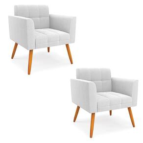A Poltrona Elisa é uma poltrona que combina elegância, conforto e durabilidade. Ela tem um design retrô e sofisticado, com Pés Palito Castanho e revestimento em tecido Bouclê Off White, que harmonizam com qualquer ambiente. Ela é ideal para sala de estar, recepções, escritórios, cozinhas ou qualquer outro espaço que você queira decorar com estilo e bom gosto. Ela tem uma estrutura em madeira de reflorestamento eucalipto, que garante a resistência e a sustentabilidade do produto. Ela suporta até 120 kg de peso, podendo ser utilizada por pessoas de diferentes biotipos. Ela tem um acabamento reforçado e espuma de qualidade D23, que oferece maciez e aconchego. Ela contém detalhes de costura no encosto e assento, resultando em um acabamento impecável, conferindo muito mais valor e elegância ao produto. A Poltrona Elisa é um móvel de alta qualidade, beleza e funcionalidade. Ela é fácil de transportar, pois tem um peso leve e um tamanho compacto. A Poltrona Elisa é um produto que vai fazer a diferença na sua decoração e no seu bem-estar. Ela vai trazer charme, conforto e durabilidade para o seu ambiente. Aproveite essa oferta e leve para casa uma poltrona de qualidade por um preço incrível. Essa é a sua chance de ter uma poltrona maravilhosa por um preço imperdível. Corra e garanta seu Kit 2 Poltronas antes que acabe o estoque!