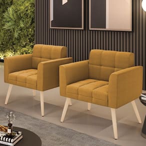 A Poltrona Elisa é uma poltrona que combina elegância, conforto e durabilidade. Ela tem um design retrô e sofisticado, com Pés Palito Natural e revestimento em tecido Bouclê Mostarda, que harmonizam com qualquer ambiente. Ela é ideal para sala de estar, recepções, escritórios, cozinhas ou qualquer outro espaço que você queira decorar com estilo e bom gosto. Ela tem uma estrutura em madeira de reflorestamento eucalipto, que garante a resistência e a sustentabilidade do produto. Ela suporta até 120 kg de peso, podendo ser utilizada por pessoas de diferentes biotipos. Ela tem um acabamento reforçado e espuma de qualidade D23, que oferece maciez e aconchego. Ela contém detalhes de costura no encosto e assento, resultando em um acabamento impecável, conferindo muito mais valor e elegância ao produto. A Poltrona Elisa é um móvel de alta qualidade, beleza e funcionalidade. Ela é fácil de transportar, pois tem um peso leve e um tamanho compacto. A Poltrona Elisa é um produto que vai fazer a diferença na sua decoração e no seu bem-estar. Ela vai trazer charme, conforto e durabilidade para o seu ambiente. Aproveite essa oferta e leve para casa uma poltrona de qualidade por um preço incrível. Essa é a sua chance de ter uma poltrona maravilhosa por um preço imperdível. Corra e garanta seu Kit 2 Poltronas antes que acabe o estoque!