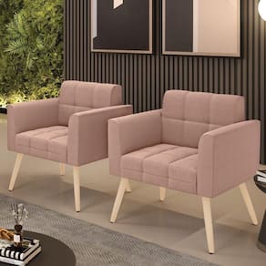A Poltrona Elisa é uma poltrona que combina elegância, conforto e durabilidade. Ela tem um design retrô e sofisticado, com Pés Palito Natural e revestimento em tecido Bouclê Rosê, que harmonizam com qualquer ambiente. Ela é ideal para sala de estar, recepções, escritórios, cozinhas ou qualquer outro espaço que você queira decorar com estilo e bom gosto. Ela tem uma estrutura em madeira de reflorestamento eucalipto, que garante a resistência e a sustentabilidade do produto. Ela suporta até 120 kg de peso, podendo ser utilizada por pessoas de diferentes biotipos. Ela tem um acabamento reforçado e espuma de qualidade D23, que oferece maciez e aconchego. Ela contém detalhes de costura no encosto e assento, resultando em um acabamento impecável, conferindo muito mais valor e elegância ao produto. A Poltrona Elisa é um móvel de alta qualidade, beleza e funcionalidade. Ela é fácil de transportar, pois tem um peso leve e um tamanho compacto. A Poltrona Elisa é um produto que vai fazer a diferença na sua decoração e no seu bem-estar. Ela vai trazer charme, conforto e durabilidade para o seu ambiente. Aproveite essa oferta e leve para casa uma poltrona de qualidade por um preço incrível. Essa é a sua chance de ter uma poltrona maravilhosa por um preço imperdível. Corra e garanta seu Kit 2 Poltronas antes que acabe o estoque!