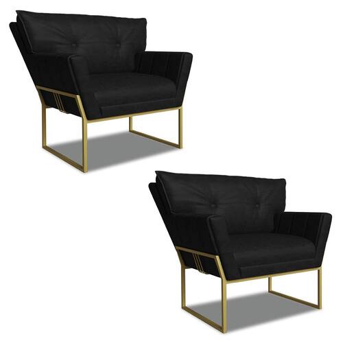 A Poltrona Anitta é uma peça que combina beleza, conforto e funcionalidade. Ela tem um design contemporâneo, sofisticado e um revestimento em tecido Sintético PU Preto que harmonizam com qualquer ambiente. Possui uma base industrial dourada com um belo detalhe trabalhado no metal, que além de adicionar um toque de charme à peça, oferece um suporte sólido e seguro, garantindo conforto superior ao sentar. Ela é ideal para sala de estar, recepções, mesa de jantar ou qualquer outro espaço que você queira decorar com estilo e bom gosto. Ela é produzida cuidadosamente em madeira de reflorestamento eucalipto, que garante a resistência e a sustentabilidade do produto. Ela suporta até 120 kg de peso, podendo ser utilizada por pessoas de diferentes biotipos. Ela tem um acabamento reforçado e espuma de qualidade D23, que oferece maciez e aconchego. A almofada fixa do encosto é revestida com fibra siliconada e conta com um detalhe elegante em botonê, que não só valoriza o design, mas também proporciona uma sensação de conforto inigualável. O encosto levemente triangular da poltrona adiciona uma estética exclusiva, enquanto os braços, com delicados frisos na costura enriquecem ainda mais o produto. A Poltrona Anitta é um produto de alta qualidade, sutileza e versatilidade. Ela é fácil de transportar, pois tem um peso leve e um tamanho compacto. A Poltrona Anitta é um produto que vai fazer a diferença na sua decoração e no seu bem-estar. Ela vai trazer personalidade e inovação para o seu ambiente. Aproveite essa oferta e leve para casa uma poltrona de qualidade por um preço incrível. Essa é a sua chance de ter uma peça atraente na sua decoração por um preço imperdível. Corra e garanta seu Kit 2 Poltronas antes que acabe o estoque!