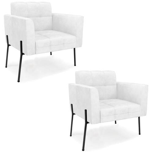 Você está procurando um Kit Poltrona que combine com a sua Sala De Estar, recepção ou seu quarto, que ofereça conforto e qualidade? Então você vai adorar a Poltrona Sala Pé Metal Preto Kit 2 Ana Sintético PU Branco, da Ibiza!