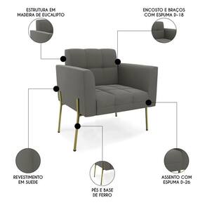 Procurando uma poltrona que combine com a sua Sala De Estar, recepção ou seu quarto, que ofereça conforto e qualidade? Então você vai adorar a Poltrona Para Sala Pés Metálicos Dourado Ana Suede Grafite, da Ibiza!