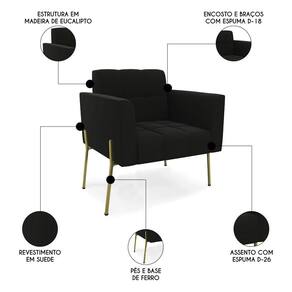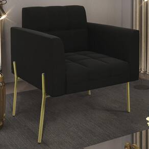 Procurando uma poltrona que combine com a sua Sala De Estar, recepção ou seu quarto, que ofereça conforto e qualidade? Então você vai adorar a Poltrona Para Sala Pés Metálicos Dourado Ana Suede Preto, da Ibiza!
