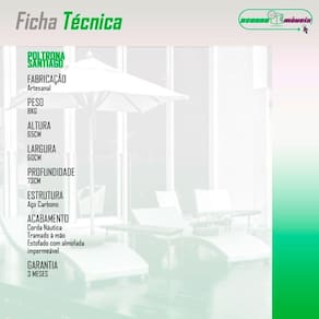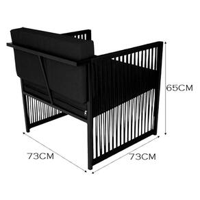 Poltrona Santiago Para área Externa De Corda Náutica Preto/preto A Poltrona Santiago, possui um design artesanal lindo e inovador, deixando seu ambiente ainda mais valorizado. Produzido com material de alta qualidade em aco carbono, conta com assento estofado Impermeavel e espuma D28, alem disso possui acabamento em Corda Nautica, o que proporciona uma adicao excepcional de elegancia ao seu ambiente. Podendo ser usada perto da piscina, no jardim, sala de estar, varanda e onde voce desejar. ESPECIFICACOES TECNICAS: -Material da Estrutura: Aco Carbono; -Material do Enchimento do Assento: Espuma D28; -Material do Encosto: Corda Nautica; -Revestimento do Assento: Impermeavel; -Possui Regulagem de Altura? Nao; -E Giratoria? Nao; -Quantidade de Lugar: 1 Lugar; -Garantia: 3 Meses; -Necessita de Montagem: Nao; -Instrucoes de Cuidado: Limpar com pano umedecido e sabao neutro; -Dimensoes do Produto (LarguraXProfundidadeXAltura): 60x73x65cm; -Conteudo da Embalagem: 01 Poltrona; Marca: ACESSE MÓVEIS